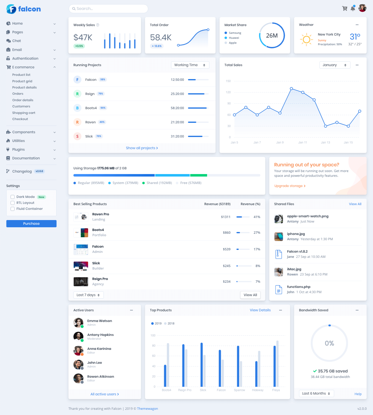 Built on top of Bootstrap 4, super modular Falcon provides you gorgeous design & streamlined UX for your WebApp.